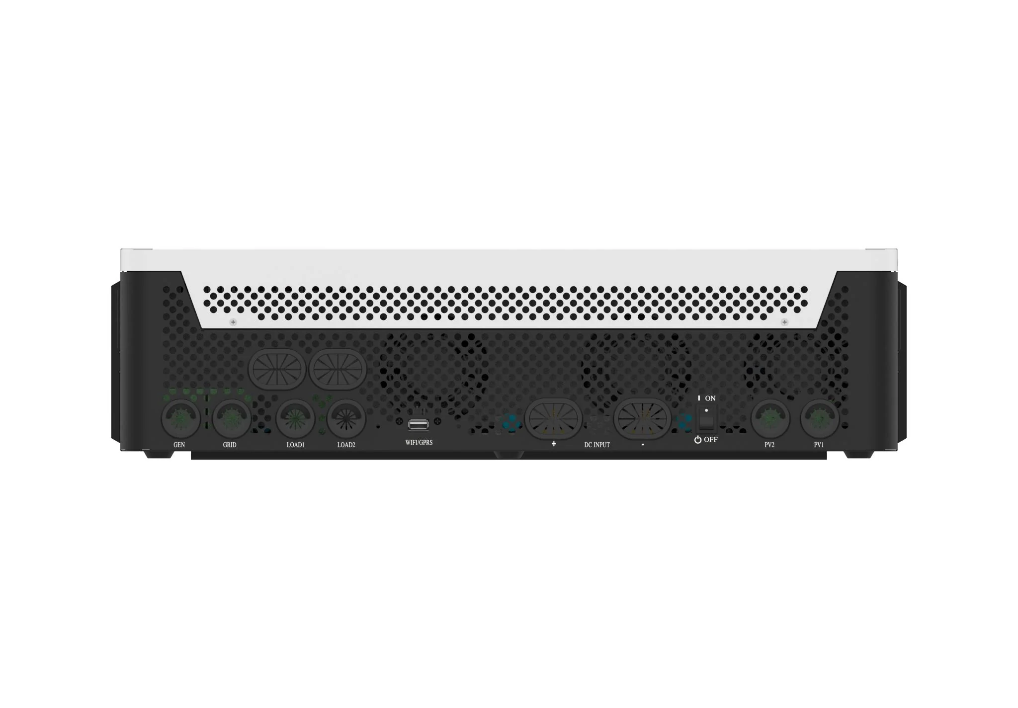 Ce chargeur onduleur hybride growatt 12kva hors réseau présente les fonctions combinées d’un onduleur à onde sinusoïdale pure de 12 kW, d’un contrôleur de chargeur solaire MPPT et d’un chargeur de batterie CA pour offrir une alimentation électrique sans interruption.